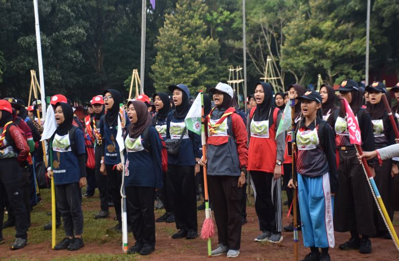Seperti yang dilaksanakan di Perkemahan Tien Soeharto, Pembina Pasukan mengumumkan sekaligus menyerahkan wimpel dan selempang kepada regu-regu putri yang berprestasi.